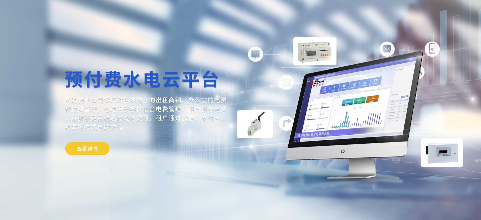 安科瑞提供的解決方案包括Acrel-EIoT能源物聯(lián)網(wǎng)云平臺、變電所運維云平臺、安全用電管理云平臺環(huán)保用電監(jiān)管云平臺、智慧消防云平臺、能源管理云平臺、工業(yè)企業(yè)能源管控平臺、遠(yuǎn)程預(yù)付費云平臺餐飲油煙監(jiān)管云平臺、電動汽車/電瓶車充電樁收費管理云平臺、電力監(jiān)控/無線測溫系統(tǒng)、電能質(zhì)量治理系統(tǒng)、電氣火災(zāi)監(jiān)控系統(tǒng)消防設(shè)備電源監(jiān)控系統(tǒng)、防火門監(jiān)控系統(tǒng)、應(yīng)急照明和疏散指示系統(tǒng)、智能照明控制系統(tǒng)、醫(yī)用隔離電源絕緣監(jiān)測系統(tǒng)等,幫助用戶實現(xiàn)能源智能化、可視化、精細(xì)化管理,提高用能效率和用能安全,為企業(yè)節(jié)能降耗和實現(xiàn)能源數(shù)字化建設(shè)提供數(shù)據(jù)服務(wù)。